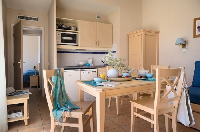 Appartement avec un coin cuisine entièrement équipé de 4 plaques vitrocéramiques, d'un réfrigérateur, d'un mini-four électrique, d'une cafetière électrique et d'un lave-vaisselle. Téléphone (payant), télévision, coffre-fort (payant). Climatisation dans le séjour.