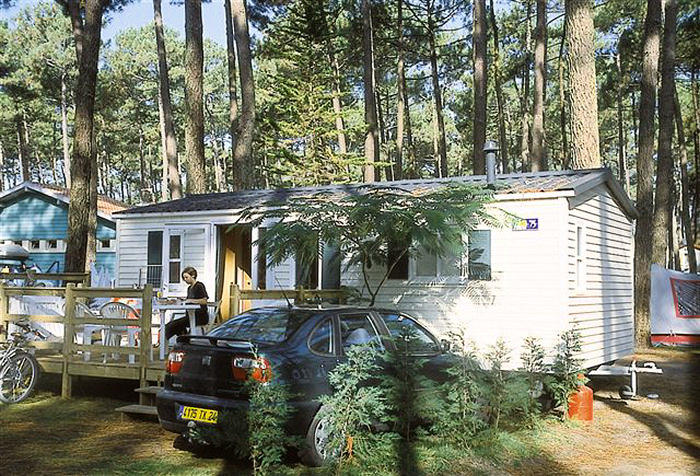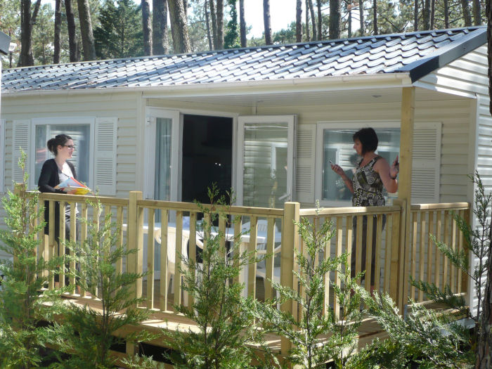 Mobil Home 3 pièces 5/6 personnes entre 21m² et 25m² composé d'un séjour, d'une chambre avec un lit double, d'une seconde chambre avec un lit transformable pour deux personnes et un lit superposé (adapté à un enfant de moins de 6 ans), d'un coin cuisine équipé, d'une salle de douche avec WC indépendants. Terrasse en bois de 10m². (5 personnes maximum, enfants et bébés inclus).