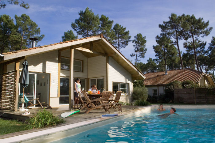 Pour avoir plus de détails et réserver cet hébergement, choisissez une date ci-dessus et cliquez sur voir l'offre ! Vous serez redirigé vers le site proposant la location.Dans un vaste domaine de 220 ha situé au coeur de la forêt landaise, à 1,5 km du centre et des commerces, à 1,3 km des plages (accès par piste cyclable) et à seulement 500 m d'un golf 9 et 18 trous, la résidence de standing Vacances LA CLAIRIERE AUX CHEVREUILS est composée de villas avec piscine et jardin privatifs.VOTRE VILLA EST ÉQUIPÉE d'une cuisine avec plaques vitrocéramiques, four + micro-ondes, hotte, lave-vaisselle, lave-linge, sèche-linge, cheminée (15 /brassée de bois), tél., jardin privatif, terrasse avec salon de jardin et transats.133 m² environ, séjour, 2 chambres avec 1 lit 2 personnes, 2 chambres avec 2 lits 1 personne, 2 salles de bains dont une avec baignoire balnéo + 2 douches, 4 wc. Piscine privée (8 x 4m).INFORMATIONS PRATIQUES : (A préciser dès la réservation et à régler sur place sauf animaux)¤ Parking gratuit (1 abri voiture ou 1 garage par villa)¤ Draps + linge de toilette inclus (change 8 EUR/kit)¤ Télévision gratuite¤ Animaux 7 EUR/nuit ; 39 EUR/animal/sem. (2 maximum/villa)Le prix de votre séjour s'entend par villa par semaine.Court séjour (2 nuits minimum) incluant les draps, le linge de toilette et le ménage final (sauf kitchenette).La résidence sera fermée du 5/1 au 16/3.SERVICE GRATUITS : ¤ Une piscine privée non chauffée (ouverte à partir d'avril selon météo)¤ Accès wi-fi dans les villas¤ Prêt de lecteur DVD (selon dispo.)SERVICE PAYANT : ¤ Location de kit bébé (lit avec draps, chaise haute et baignoire) 7 EUR/jour ; 40 EUR/séjour (selon disponibilité, à préciser dès la réservation)¤ Accès wi-fi dans les villasNous vous proposons 3 prestations supplémentaires (à préciser et à régler dès la réservation) : ¤ Le frigo rempli à l'arrivée base 4/6 pers.¤ Un accueil de fête comprenant une bouteille de champagne, un bouquet de fleurs et spécialités régionales/logement ou une bouteille de vin local et spécialités régionales/logementNous vous proposons 3 types de SERVICES HOTELIERS (à préciser et à régler dès la réservation :* Lits faits à l'arrivée* Ménage final (sauf kitchenette)* Lits faits à l'arrivée + Ménage final (sauf kitchenette)