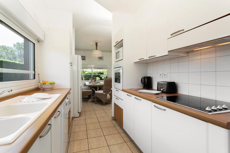 La villa est équipée d'une plaque de cuisson, d'un réfrigérateur-congélateur, d'un four, d'un micro-ondes, d'un lave-vaisselle, d'un lave-linge et d'un sèche-linge intégré.