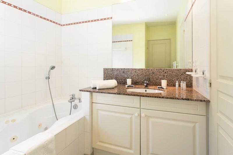 Séjour : Canapé-lit. Télévision satellite. Cuisine équipée: Réfrigérateur-congélateur, lave-vaisselle, four, micro-ondes, lavelinge, sèche-linge intégré (dans la plupart des villas). 2 salle de bains ou salles de douche (dont 1 avec baignoire balnéo pour la plupart). WC. Extérieurs: Grande terrasse et/ou balcon, Piscine privée, Parking Villa 3 pièces 4-6 personnes (ECF) 91 m² 2 chambres avec 1 grand lit ou 2 lits simples. Certains avec WC supplémentaire.