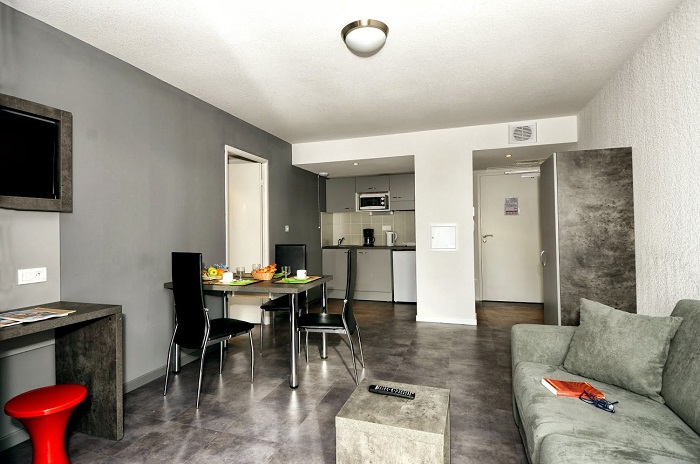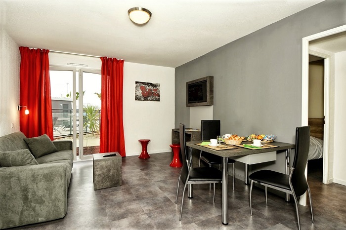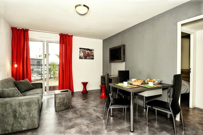 Résidence de tourisme - A 50m des commerces - Située à Saint Jean de Védas à 3km de Montpellier - Piscine extérieure chauffée - Salle de fitness - Sauna - Hammam - Linge de lit inclus - Service petit déjeuner - Wifi - Parking - Laverie.