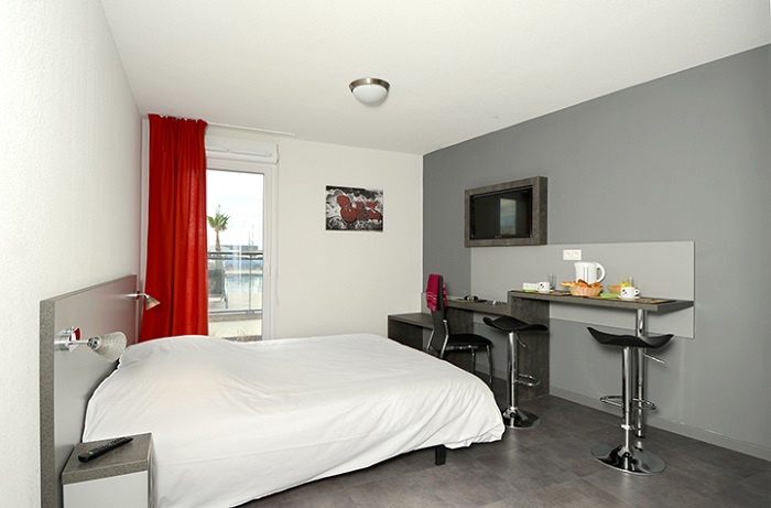 Pour avoir plus de détails et réserver cet hébergement, choisissez une date ci-dessus et cliquez sur voir l'offre ! Vous serez redirigé vers le site proposant la location.Studio 2 personnes de 25 m² accès PMR ,composé d'un séjour avec lit double ou 2 lits simples, d'une kitchenette équipée et d'une salle de bains avec WC.