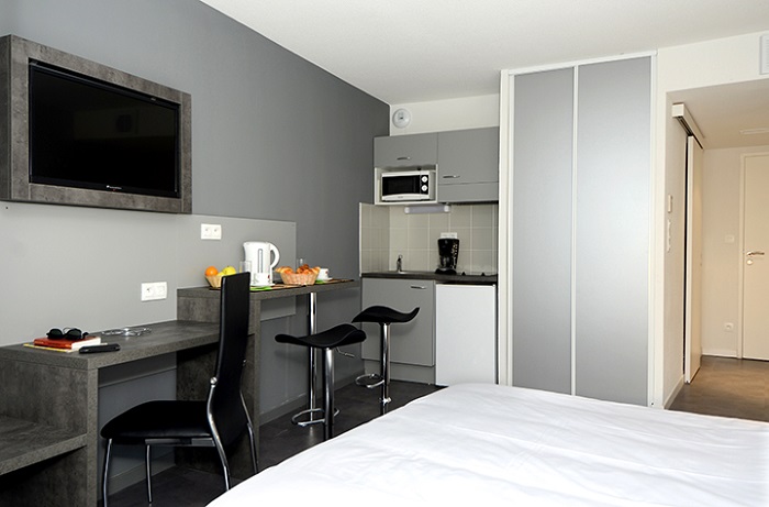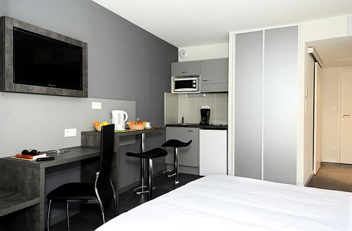 Studio 2 Personnes de 19 à 29m², composé d'un séjour avec 2 lits twin, d'une kitchenette équipée, d'une salle de bain douche avec WC.