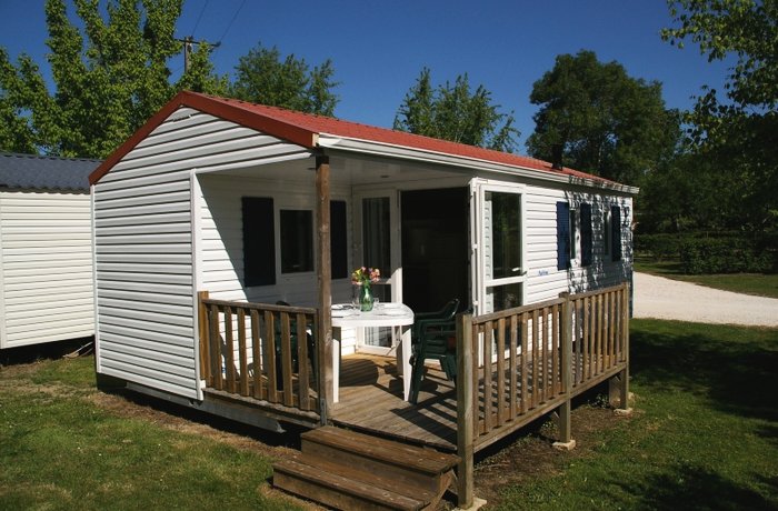 Pour avoir plus de détails et réserver cet hébergement, choisissez une date ci-dessus et cliquez sur voir l'offre ! Vous serez redirigé vers le site proposant la location.Mobil Home 3 Pièces 4 Personnes de 32m² composé d'un coin repas,d'une chambre avec 1 lit double, d'une chambre avec 2 lits simples, d'une salle de bain et de WC séparés. Terrasse couverte avec salon de jardin.
