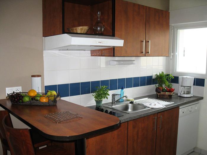 La cuisine comprend des plaques vitocéramiques, une hotte, une réfrigérateur, un four micro-ondes, un lave-vaisselle, de la vaisselle et les ustensiles de cuisine. L'appartement dispose également d'un lave-linge.