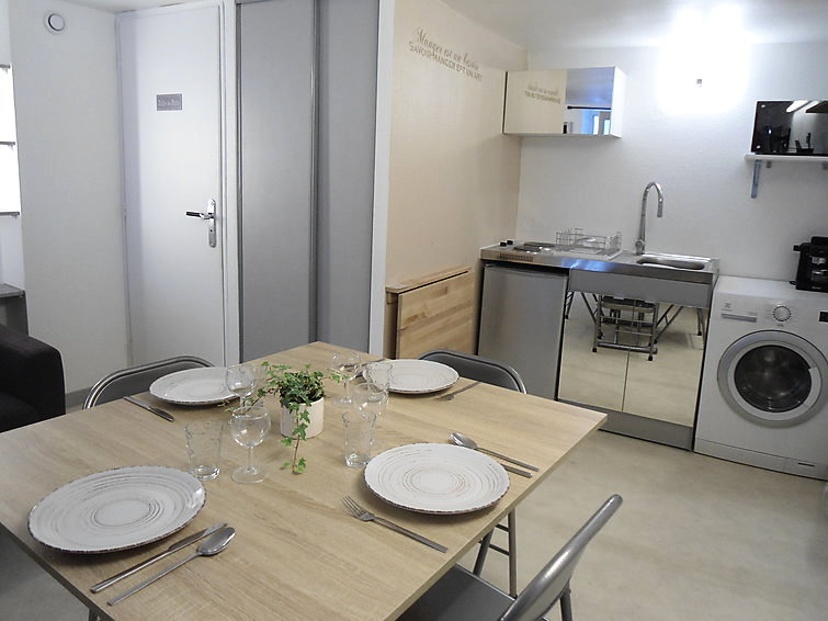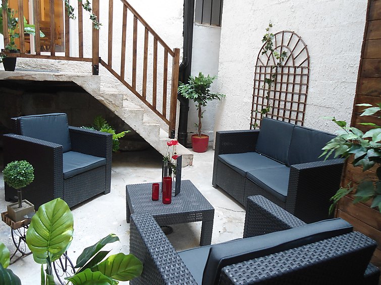 Apt "Jardin en Ville", 2 pièces pour 4 personnes, 36 m2, à l'étage supérieur, confortable et moderne aménagement. Séjour/salle à manger avec TV (satellite). Non permis de fumer. Internet (Connexion WIFI). 1 divan-lit double. Chambre à coucher avec 1 grand-lit. Cuisine ouverte avec four à 2 plaques, four micro-ondes et congélateur. Salle de bains. Jardinet 18 m2, meubles de terrasse. Autres fournitures: chaise haute pour enfant, sèche-cheveux, fer à repasser, lave-linge.