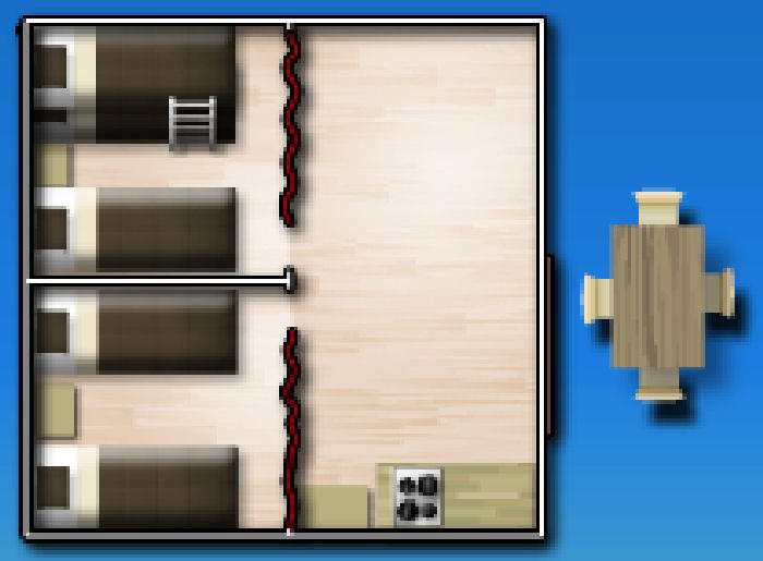 25 m2 de surface 1 Chambre avec 2 Lits jumeaux 1 Chambre avec 2 Lit(s) superpos?(s) et 1 Lit simple Coin Cuisine Pas de douche et sanitaires dans le logement, utiliser les ?quipements collectifs Terrasse Plaques gaz R?frig?rateur Salon de jardin Rangement