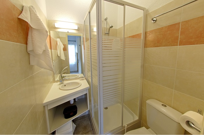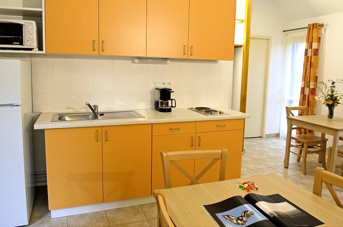 Appartement de 25m² pour 4 personnes composé d'un séjour-chambre avec 2 lits et d'une chambre-cabine avec 2 lits superposés. Kitchenette, salle d'eau (douche, lavabo, WC) et terrasse avec mobilier de jardin.Certains appartements sont adaptés pour les personnes à mobilité réduite.