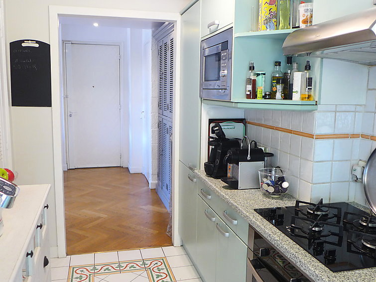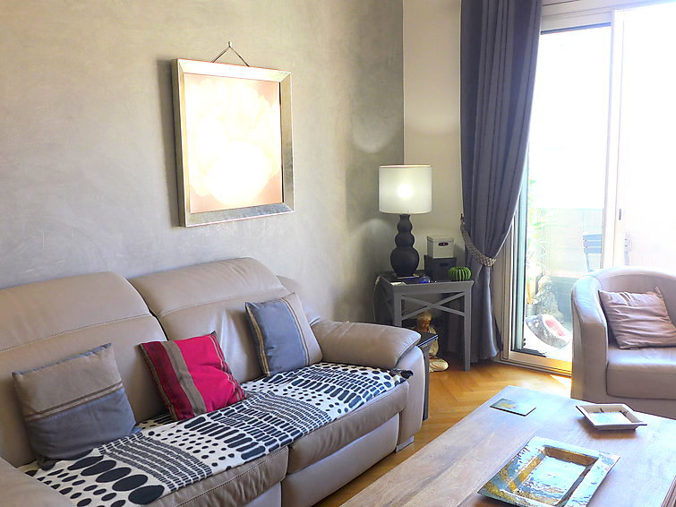Apt 2 pièces 60 m2 au 3ème étage. Aménagement agréable et moderne: séjour/salle à manger avec écran plat et air-conditionné. Sortie sur la terrasse. 1 chambre avec 1 grand-lit (160 cm, longueur 190 cm), TV (écran plat), air-conditionné. Cuisine (4 plaques de cuisson, four, lave-vaisselle, four micro-ondes, congélateur, cafetière électrique). Douche/WC. Terrasse 5 m2. Meubles de terrasse. A disposition: lave-linge, fer à repasser, sèche-cheveux. Internet (Connexion WIFI, gratuit). Veuillez noter: logement pour non fumeurs. Détecteur de fumée.