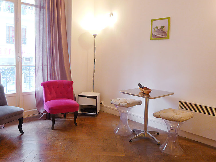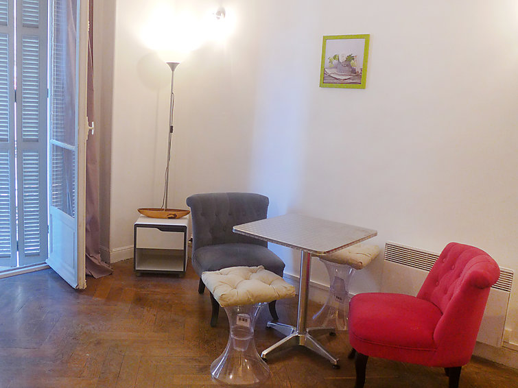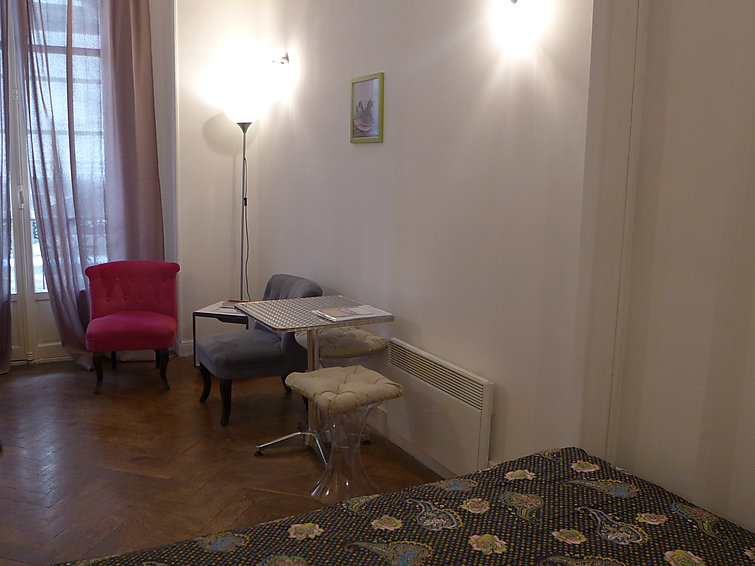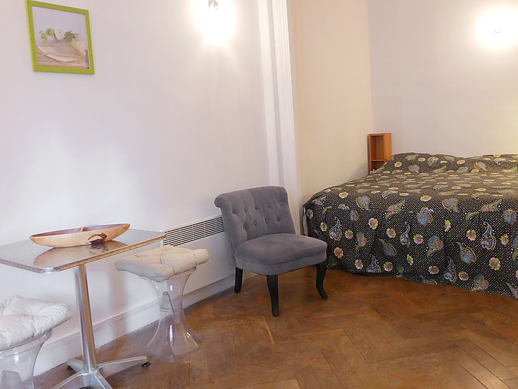 Studio 31 m2 au 1er étage, rénové: séjour/salle à manger avec 1 grand-lit (180 cm, longueur 200 cm), TV. Cuisine (4 plaques de cuisson, four, four micro-ondes, cafetière électrique). Douche/WC. Chauffage électrique, air-conditionné.