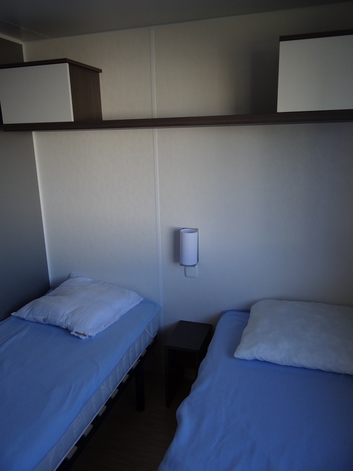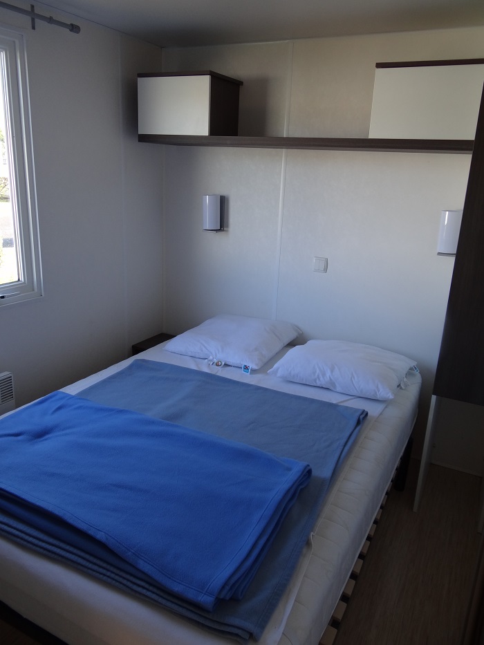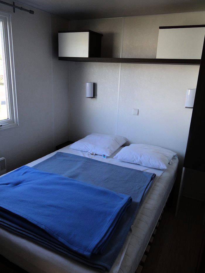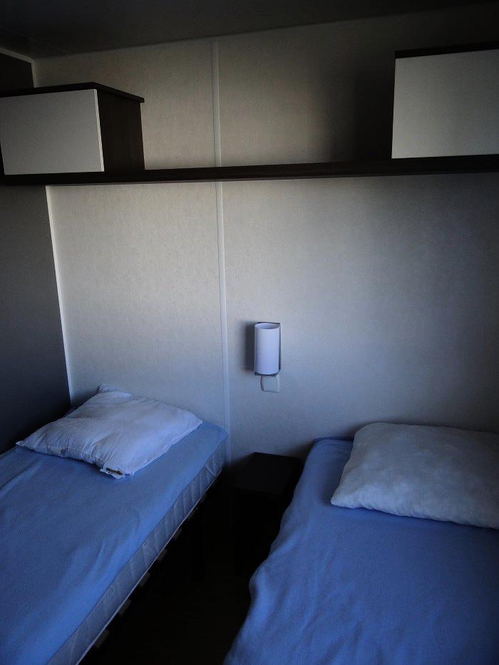 Mobil Home de 31m² 3 Pièces 4/5 Personnes datant de 2010 composé d'un coin séjour avec banquette, d'un coin cuisine équipé, d'une chambre avec 1 lit double, de deux chambres avec 2 lits simples chacune, d'une salle de douche et de WC séparé. Terrasse.Oreillers et couvertures fournies.