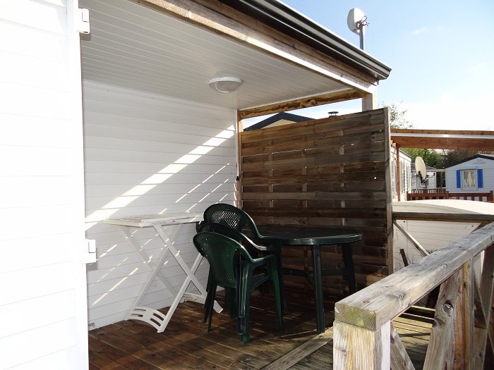 Pour avoir plus de détails et réserver cet hébergement, choisissez une date ci-dessus et cliquez sur voir l'offre ! Vous serez redirigé vers le site proposant la location.Mobil Home 3 Pièces 4 Personnes, composé d'un coin séjour, d'un coin cuisine équipé, d'une chambre avec 1 lit double, d'une chambre avec 2 lits simples, d'une salle de douche et de WC séparé. Terrasse semi-couverte avec salon de jardin.