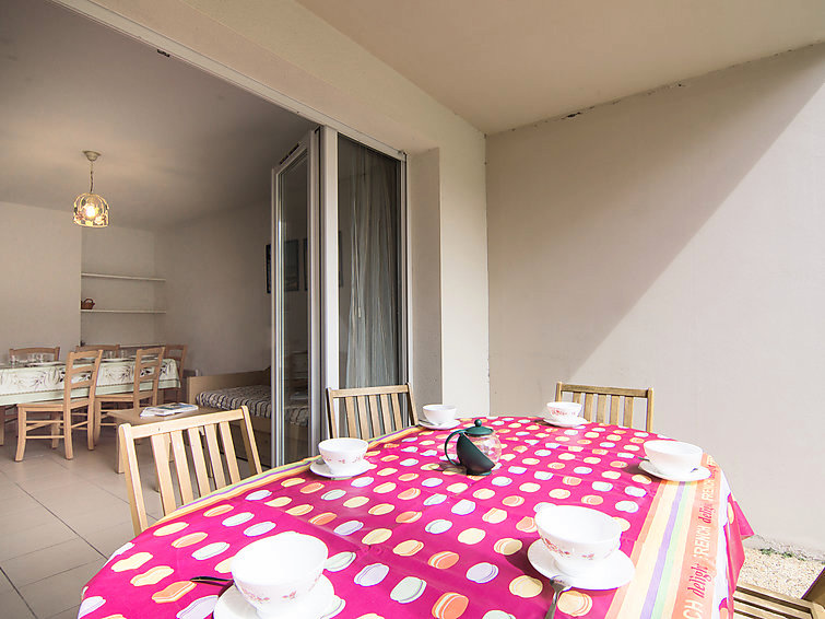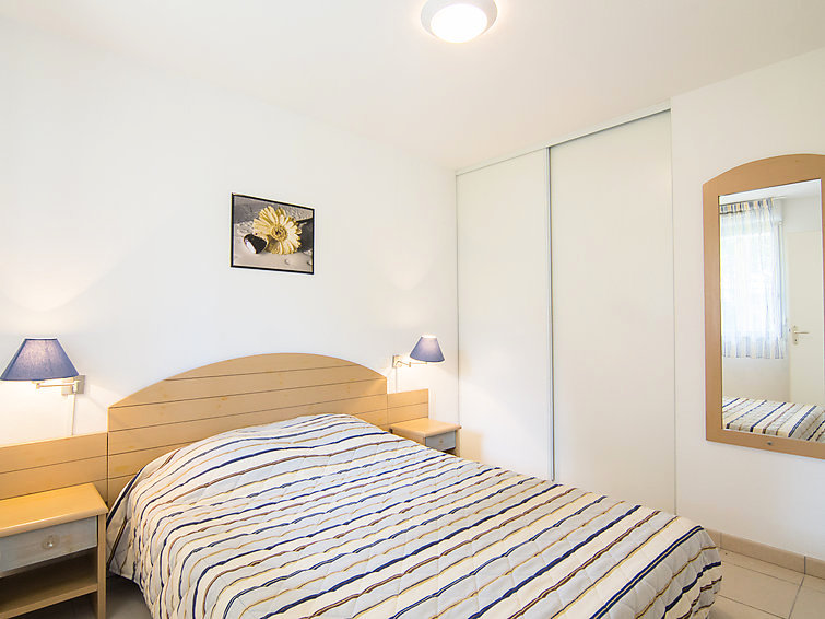 Pour avoir plus de détails et réserver cet hébergement, choisissez une date ci-dessus et cliquez sur voir l'offre ! Vous serez redirigé vers le site proposant la location.Apt 2 pièces 32 m2, au rez-de-chaussée. Séjour/salle à manger avec 1 lit gigogne (2 pers. 2 x 90 cm, longueur 190 cm), TV (écran plat). Sortie sur la terrasse. 1 chambre avec 1 grand-lit (1 x 140 cm). Coin cuisine (4 plaques de cuisson, four, lave-vaisselle, four micro-ondes, cafetière électrique). Salle de bains, WC séparé. Chauffage électrique. Terrasse 12 m2. Meubles de terrasse. Vue sur la piscine. Place de parking No A10. Adapté(e) aux familles.