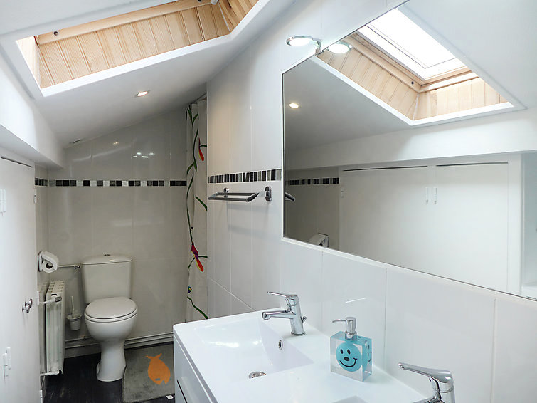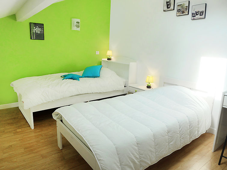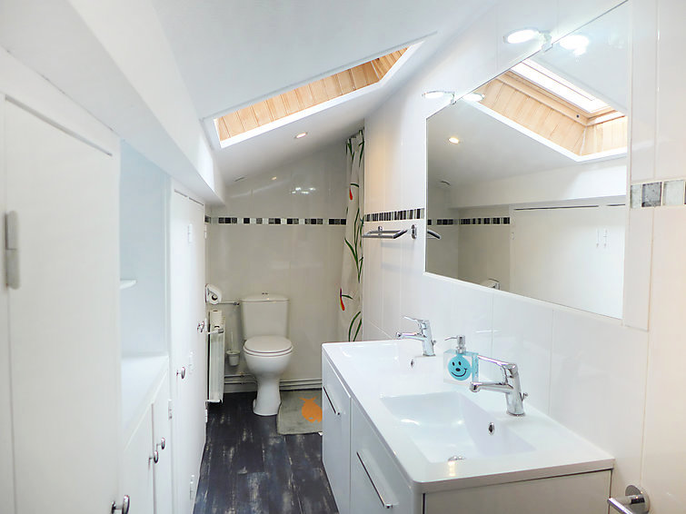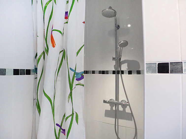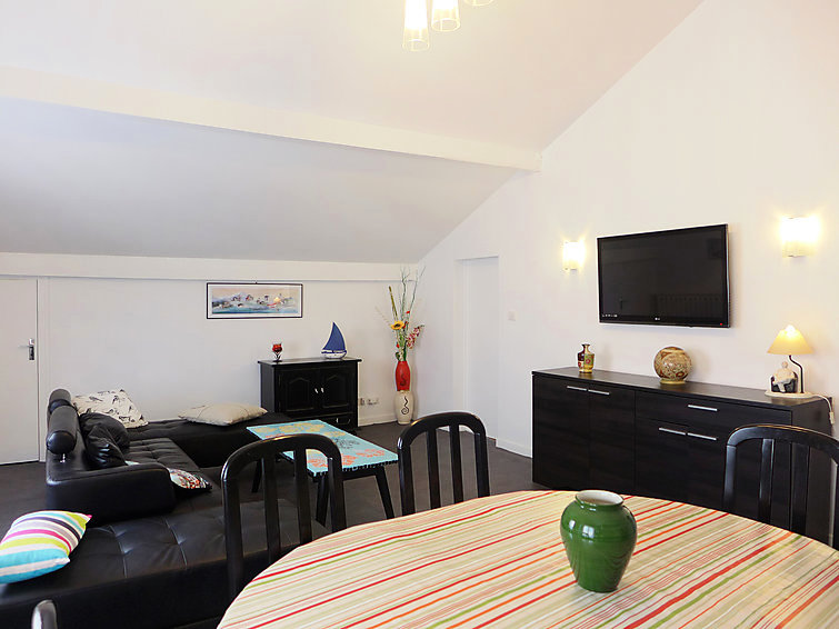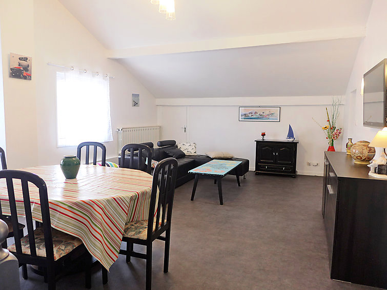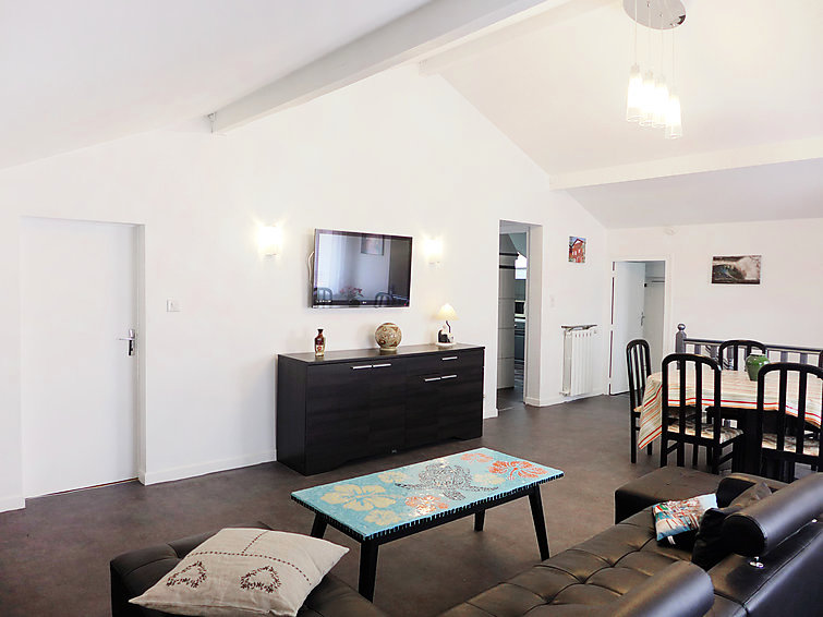 Apt 3 pièces 75 m2 au 1er étage. Aménagement agréable et plaisant: séjour/salle à manger avec 1 divan-lit (140 cm), TV (écran plat), air-conditionné. 1 chambre avec 1 grand-lit (1 x 140 cm), TV. 1 chambre avec 2 lits (90 cm), TV. Cuisine (2 plaques de cuisson, four, lave-vaisselle, 2 plaques vitrocéramique, four micro-ondes, congélateur). Douche/WC, double vasque. Terrasse 20 m2. Meubles de terrasse. A disposition: lave-linge. Internet (Connexion WIFI, gratuit). Place de parking.