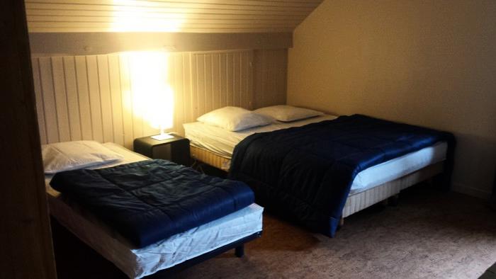 Gite de 60m² pour 6/8 personnes, composé d'une kitchenette équipée, d'un séjour avec un coin repas, de 2 chambres avec un lit double et 2 lits simples chacune, d'une salle de bains avec une douche et un WC.