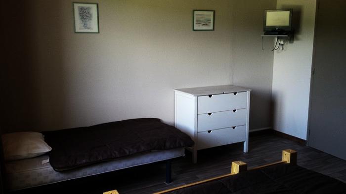 Gite de 30m² pour 3 à 4 personnes composé d'une chambre avec un lit double, d'un lit superposé et d'un lit d'appoint (pour les petits), d'un séjour, d'un coin cuisine équipé, d'une salle de bains et de toilettes.