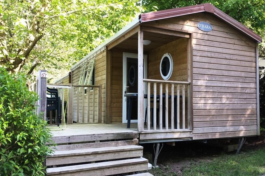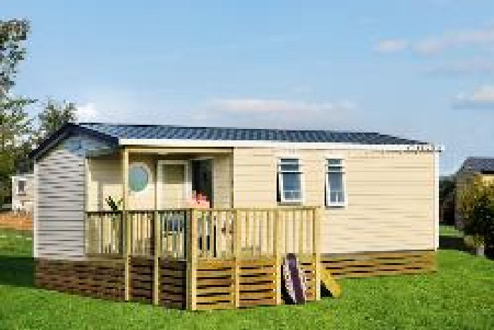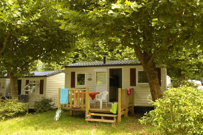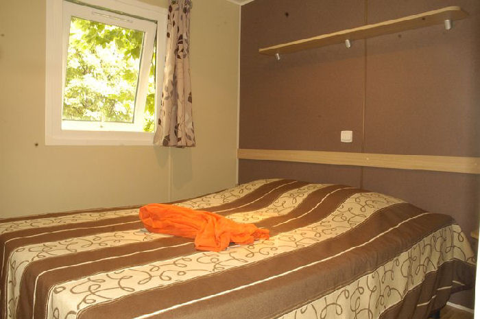 Mobil Home de 28m² pour 4 à 6 personnes composé d'une chambre avec un lit double, d'une chambre avec deux lits simples, d'un séjour avec lit d'appoint, d'un coin cuisine équipé, d'une salle de bain, de toilettes et d'une terrasse.