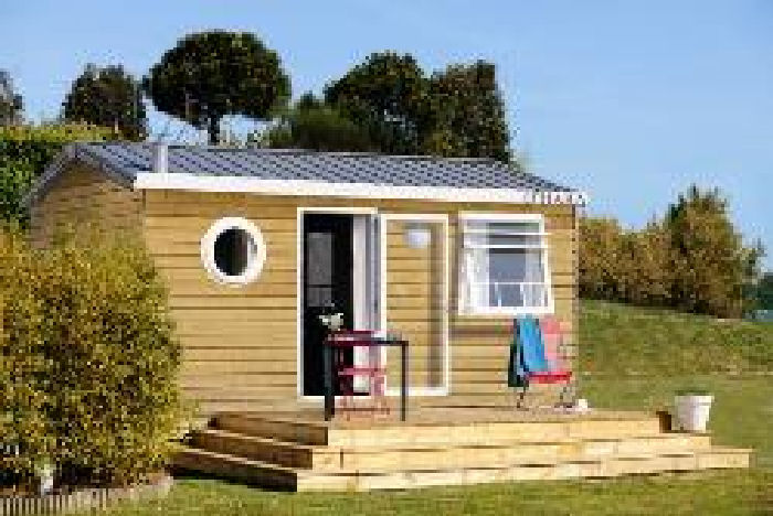 Chalet de 16m² pour 3 personnes, composé d'une kitchenette équipée, d'un séjour avec un coin repas, 3 couchages (1 lit superposé et 1 lit simple), et d'une terrasse couverte. A noter : le chalet ne possède pas d'arrivée d'eau (pas d'évier ni de sanitaires), le bloc sanitaires du camping se situe à 2 pas du chalet.