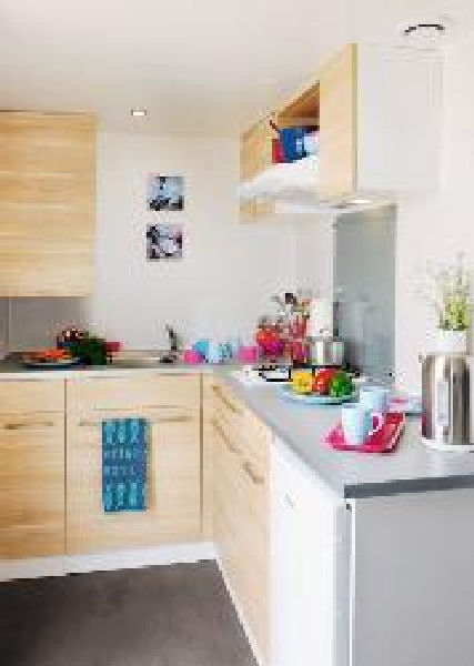L'appartement comprend un coin cuisine équipé avec de 2 plaques électrique, un réfrigérateur, micro-ondes, ustensiles de cuisine et vaisselle adaptée au nombre de personnes dans le logement.
