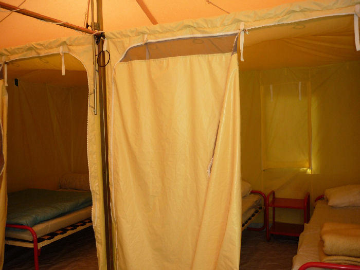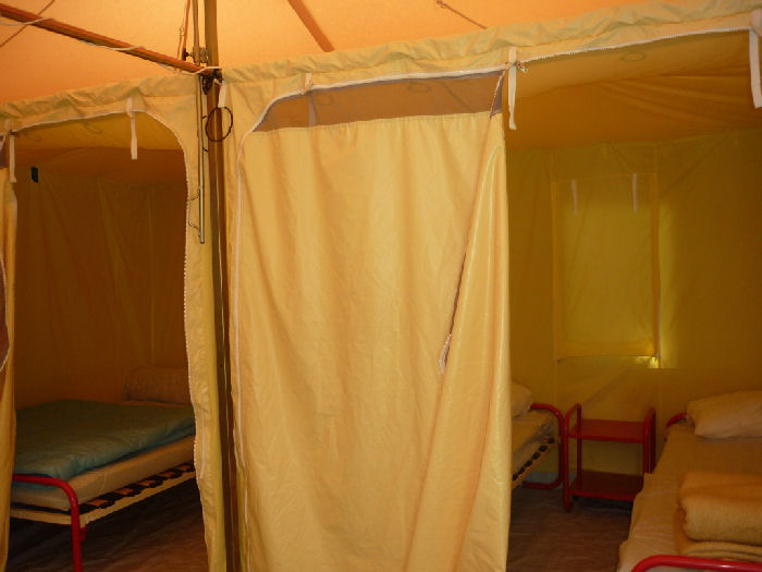 Bungalow toilé de 16m² pour 4 personnes, composé d'un séjour avec un lit double, d'une chambre avec 2 lits simples, d'un coin cuisine et d'une terrasse.A noter: Ce bungalow ne possède pas de sanitaires