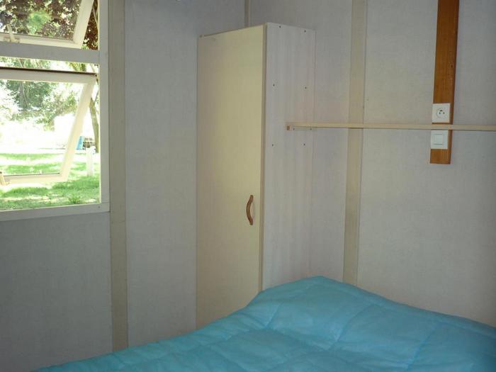 16 m2 de surface 1 S?jour avec 1 Lit double 1 Chambre avec 2 Lits simples Coin Cuisine Pas de douche et sanitaires dans le logement, utiliser les ?quipements collectifs Plaques gaz R?frig?rateur Vaisselle et ustensiles de cuisine inclus Salon de jardin