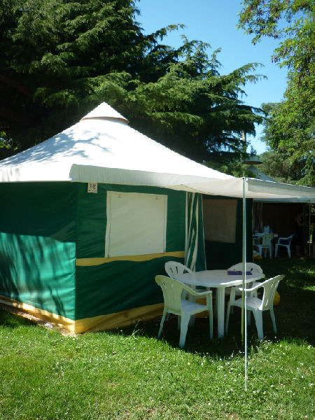 Bungalow toilé de 16m² pour 4 personnes, composé d'un séjour avec une kitchenette équipée, d'un coin nuit avec "côté parent" un lit double et "côté enfant" 2 lits simples. A noter : le bungalow ne possède pas d'arrivée d'eau (pas d'évier ni de sanitaires) mais le bloc sanitaires du camping se situe à 2 pas. Ce logement atypique est un bon compromis entre le confort d'un mobil home et les vraies valeurs du camping, proche de la nature.