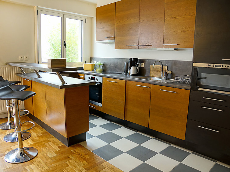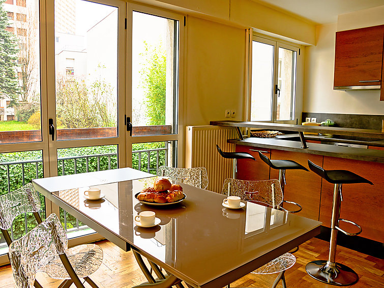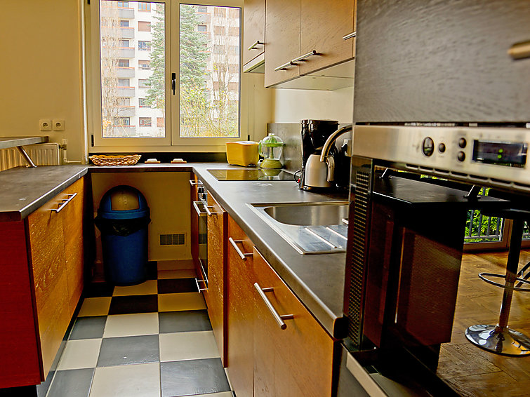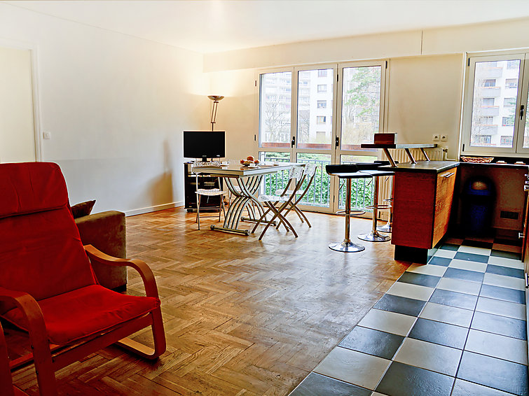 Apt 2 pièces 50 m2 au 2ème étage. Clair, complètement rénové en 2010, aménagement confortable et moderne: séjour/salle à manger avec 1 divan-lit (140 cm), TV (écran plat). 1 chambre avec 2 lits (90 cm). Cuisine ouverte (four, lave-vaisselle, 3 plaques à induction, four micro-ondes, cafetière électrique) avec bar. Douche, WC séparé. Vue sur le jardin. A disposition: lave-linge, fer à repasser, sèche-cheveux. Internet (Connexion WIFI, gratuit). Veuillez noter: logement pour non fumeurs.