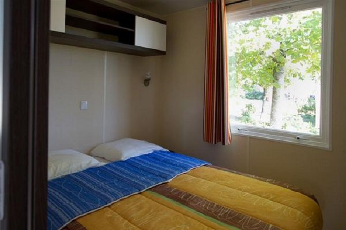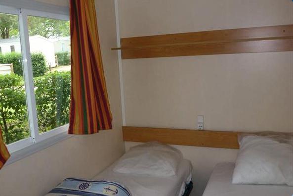 Pour avoir plus de détails et réserver cet hébergement, choisissez une date ci-dessus et cliquez sur voir l'offre ! Vous serez redirigé vers le site proposant la location.Mobil Home 4/5 personnes de 27m² composé d'un séjour-salon avec banquette lit pour 1 personnes et cuisine équipé, d'une chambre avec un lit double, d'une chambre avec 2 lits simples, d'une salle de bain avec cabine de douche et meuble lavabo, d'un WC indépendant et d'une terrasse en bois de 10m².