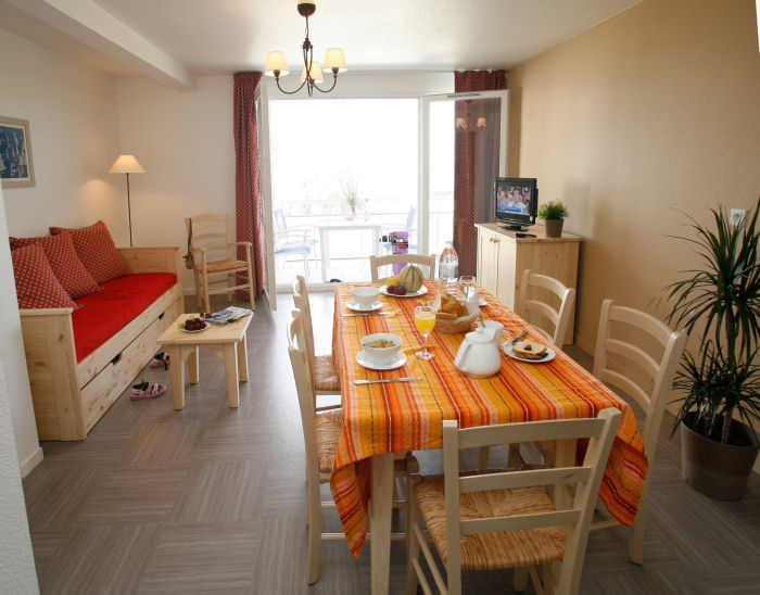 Appartement de 35m² de 2 pièces pour 4 personnes composé d'un séjour avec 2 couchages, d'une chambre avec 2 couchages, d'une kitchenette équipée et d'une salle de douche avec WC. A noter : si vous optez pour une formule Court séjour : La formule Court séjours « Nuits Cosy » comprend : le linge de lit et le linge de toilette, les lits faits à l?arrivée, la télévision et le ménage quotidien