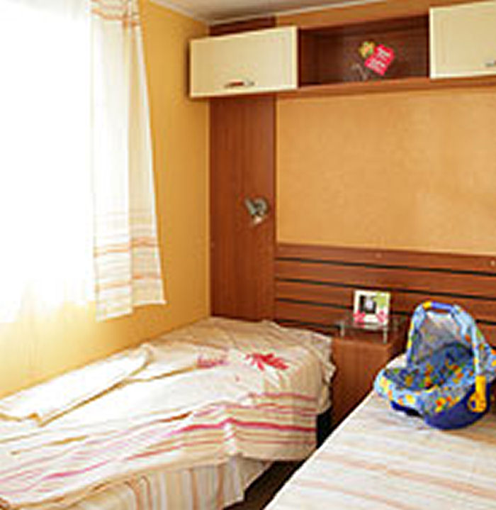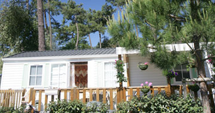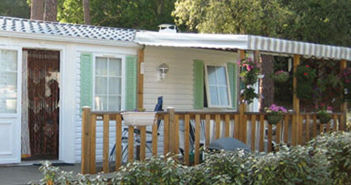 Mobil Home Elégance de 6 personnes de 28 à 33m² composé d'une chambre avec 2 lits simples, une chambre avec un lit double, un salon spacieux avec un large canapé transformable en lit 2 places, une cuisine toute équipée, une salle de bains avec douche. Terrasse, salon de jardin et parfois un barbecue.