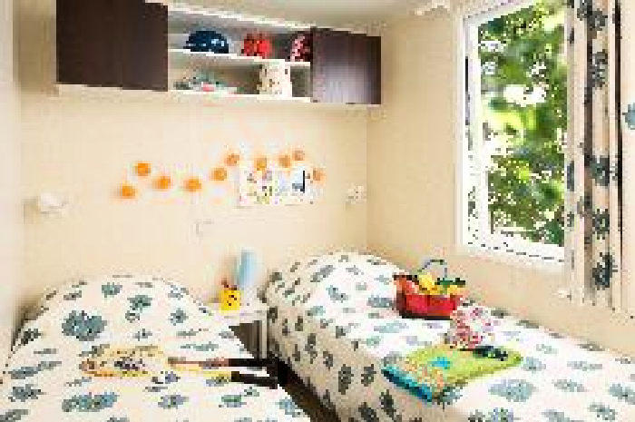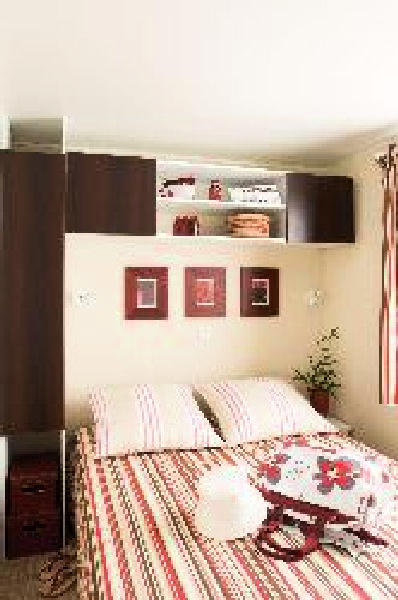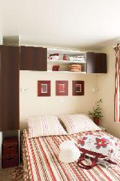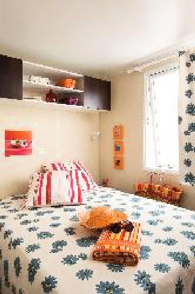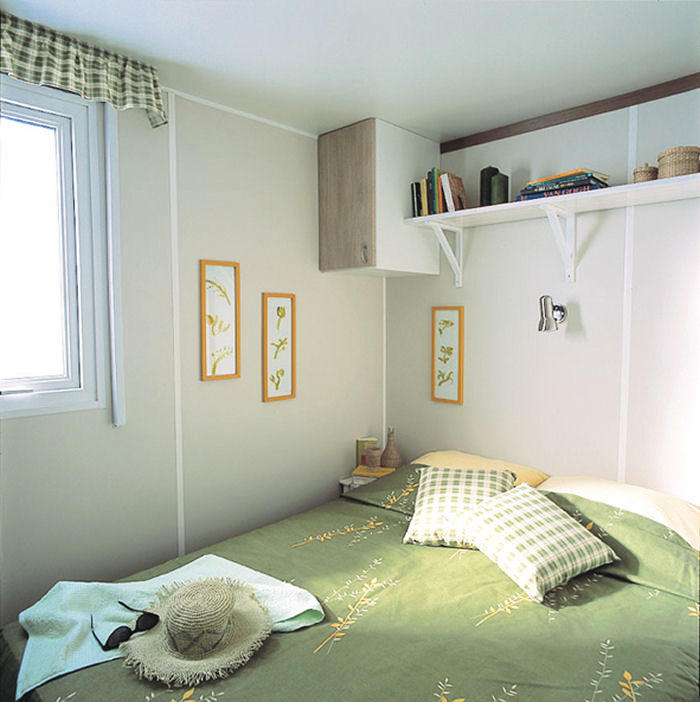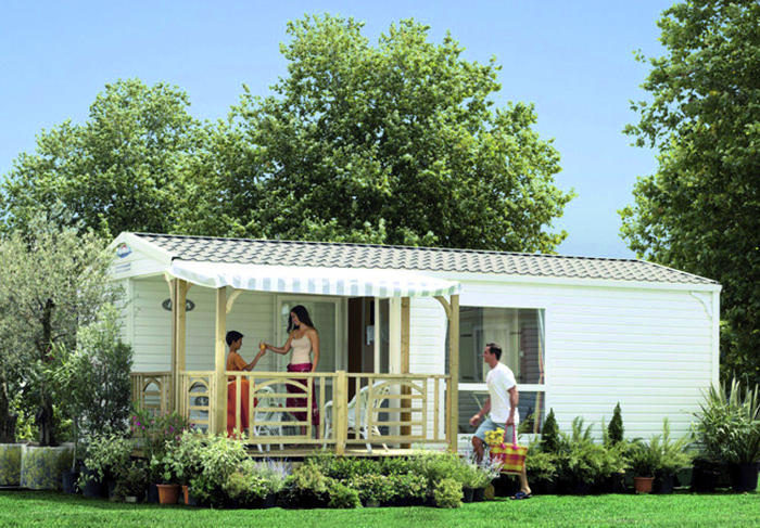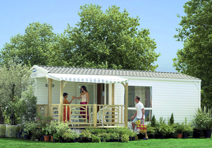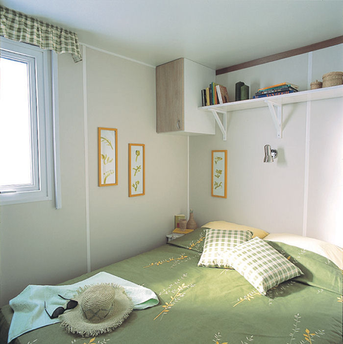 Ce cottage de 26m² peut accueillir de 4 à 5 personnes. Il dispose d'une chambre avec un lit double, d'une chambre avec deux lits simples, d'un convertible dans le séjour, d'un coin cuisine équipée, d'une salle de bain avec douche et lavabo et de WC séparés. Il dispose également d'une terrasse de 9m² avec un salon de jardin (sans parasol ni socle). Certains modèles disposent aussi d'un espace lit bébé.
