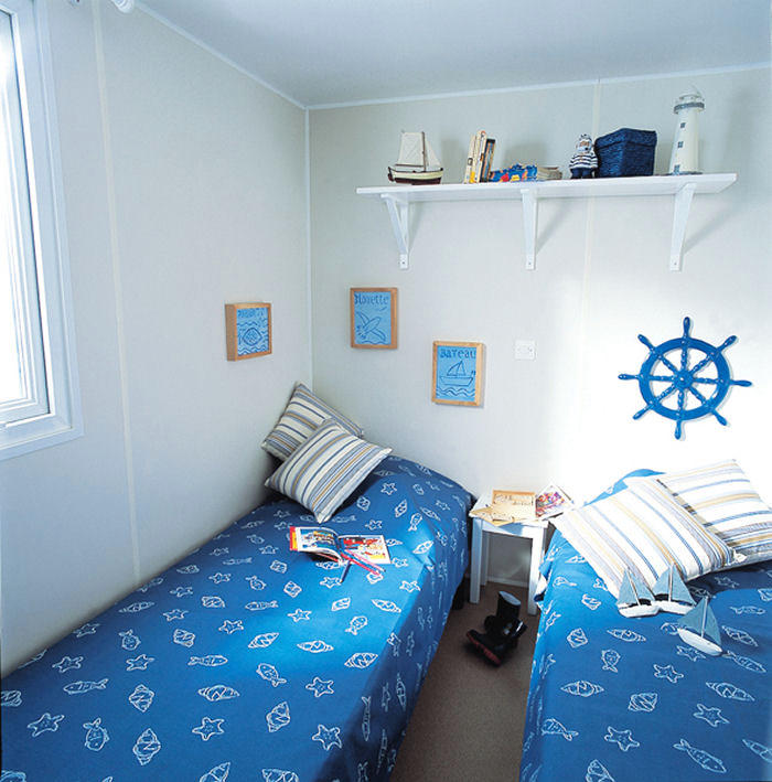 Cottage de 31m² pour 4/6 personnes, composé d'une kitchenette équipée, d'un séjour avec un coin repas et une banquette convertible en couchage pour 2 personnes, d'une chambre avec un lit double, d'une chambre avec 2 lits simples, d'une salle de bains avec une douche, d'un WC séparé et d'une terrasse de 11m².Le cottage est conseillé pour 4 personnes + un bébé. Possibilité d'ajouter un lit bébé dans l'une des chambres (lit bébé en option, sur réservation).