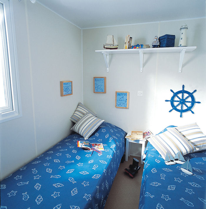 Ce cottage de 33m² peut accueillir 6 personnes. Il dispose d'une chambre avec un lit double, de deux chambres avec deux lits simples, d'un coin cuisine équipée, d'une salle de bain avec douche et lavabo et de WC séparés. Il dispose également d'une terrasse de 11m² avec un salon de jardin.