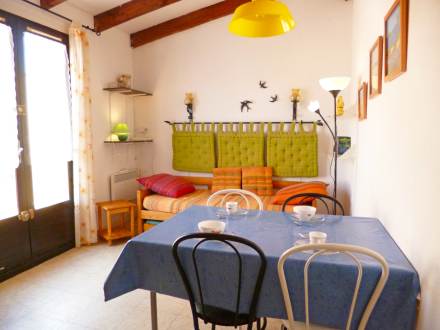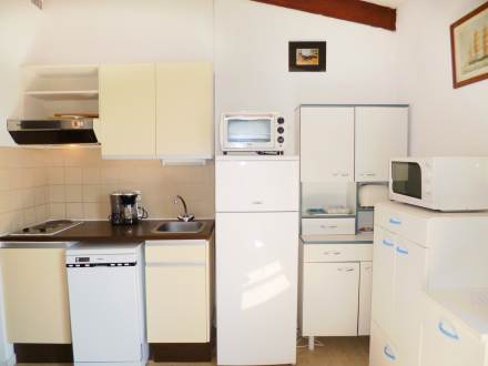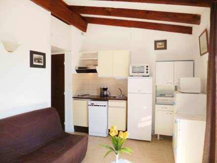 Pour avoir plus de détails et réserver cet hébergement, choisissez une date ci-dessus et cliquez sur voir l'offre ! Vous serez redirigé vers le site proposant la location.Apt 2 pièces 25 m2 au 1er étage, aménagement agréable: séjour/salle à manger avec 1 divan-lit double. 1 chambre avec 2 lits. Coin cuisine (2 plaques de cuisson, four, lave-vaisselle, four micro-ondes, congélateur). Douche/WC. Terrasse 8 m2. Meubles de terrasse. A disposition: lave-linge. Maximum 1 animal/ chien autorisé. L'appartement se situe en bordure de route.
