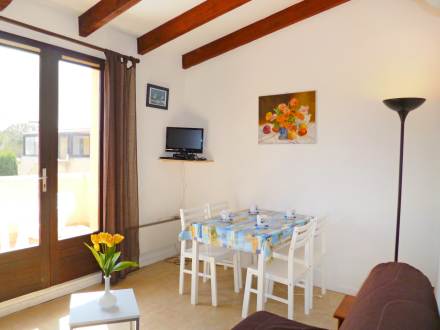 Pour avoir plus de détails et réserver cet hébergement, choisissez une date ci-dessus et cliquez sur voir l'offre ! Vous serez redirigé vers le site proposant la location.Charges courantes Électricité : nonEau : non Informations complémentaires Situation : à l'étagePas de caution demandée5CL64 - Le Barcarès - Appartement T2 mezzanine + Loggia -Résidence Caraïbes du levant vue jardin. Accès direct à la plage, appartement T2 mezzanine 35.80 m² + loggia 9.44 m² équipé pour 4 /5 personnes situé au 1 er étage. Se composant, d'une pièce principale / séjour avec mezzanine lit 140 cm, télévision. Une cuisine équipée, four, plaque vitrocéramique, micro-onde, réfrigérateur-congélateur. Une chambre avec un lit 140 cm et en mezzanine deux lits 90 cm. Une salle d'eau, machine à laver, WC. Loggia coin repas. Parking privé à la résidence. Climatisation Prestations supplémentaires optionnelles: le linge de maison n'est pas fourni mais il est possible de le réserver à l'avance et de le récupérer à la remise des clés. - kit lit double: 12.00 ? - kit lit simple: 9.00 ? - kit serviette : avec une grande et une petite serviette: 8.00 ? Option Ménage fin de séjour à demander à l'agence : 75 ? Location WIFI BOX : 39 ? / semaine Il vous sera demandé de régulariser le dépôt de garantie de votre location, le lien vous sera envoyé 10 jours avant votre arrivée et sera à effectué impérativement avant votre arrivée (Pas d'espèce ni de chèque). Nous sommes agréées Chèques Vacances. Ne convient pas aux PMR. Les clés sont à récupérer à l'agence Citygest entre 15h et 18h.