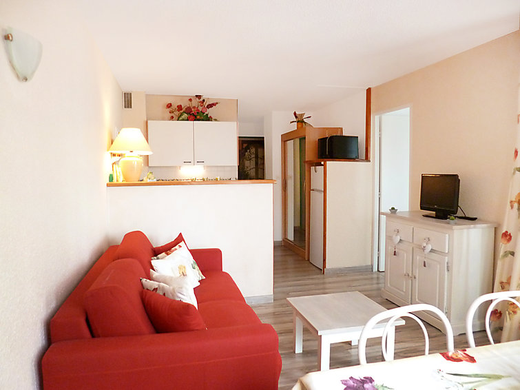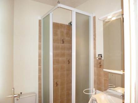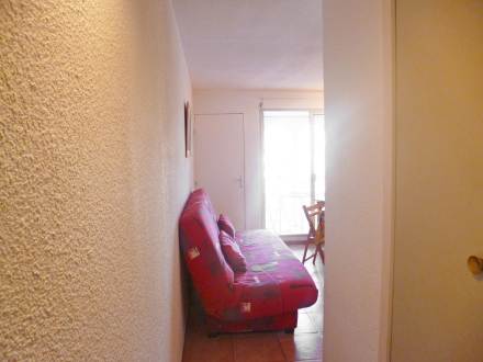 Studio 18 m2 au 2ème étage, complétement rénové en 2008: séjour/salle à manger avec 1 divan-lit double et TV (écran plat). Cabine avec 1 x 2 lits superposés. Coin cuisine (4 plaques de cuisson, mini-four, plaque vitro céramique, four micro-ondes). Douche/WC. Balcon 3 m2, situation ouest. Maximum 1 animal/ chien autorisé.