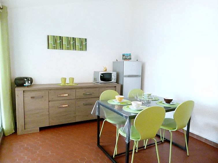 Pour avoir plus de détails et réserver cet hébergement, choisissez une date ci-dessus et cliquez sur voir l'offre ! Vous serez redirigé vers le site proposant la location.Apt 2 pièces 30 m2 au 1er étage: séjour/salle à manger avec TV. Sortie sur la terrasse. 1 chambre avec 1 grand-lit (140 cm). Alcôve avec 1 x 2 lits superposés. Coin cuisine (4 plaques de cuisson, mini-four, four micro-ondes). Douche/WC. Terrasse 12 m2, situation ouest et situation nord. Meubles de terrasse.