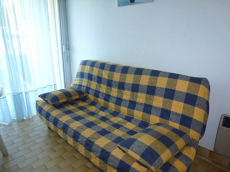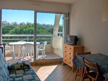 Pour avoir plus de détails et réserver cet hébergement, choisissez une date ci-dessus et cliquez sur voir l'offre ! Vous serez redirigé vers le site proposant la location.Port Camargue (30) - Quartier Plage Sud - Résidence La Lagune Studio cabine de 20m environ - Jusqu' à 4 personnes Situé au 1er étage d'une résidence de 2 étages avec accès direct à la plage., il se compose d'une entrée avec 2 lits superposés, d'une salle d'eau avec WC, d'un séjour kitchenette avec 1 banquette lit double, téléviseur, d'une loggia avec store solaire et mobilier d'extérieur, ce logement dispose également d'un emplacement de parking privatif.Les 'Plus' de cette location de vacances à Port Camargue : une jolie vue sur les jardins intérieurs de la résidence et sur la mer. Entrée : Nombre de lit simple : 2 Séjour : Nombre de lit double : 1 Equipements fournis : Four Frigo Fer MicroOnde Televiseur