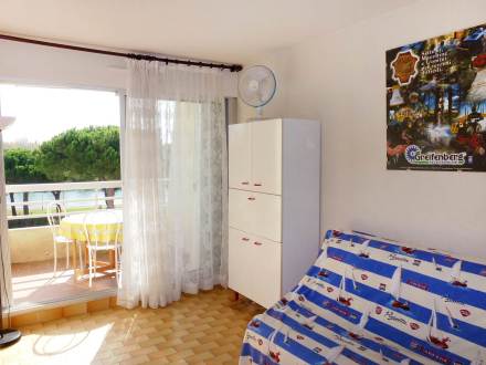 Pour avoir plus de détails et réserver cet hébergement, choisissez une date ci-dessus et cliquez sur voir l'offre ! Vous serez redirigé vers le site proposant la location.Port Camargue (30) - Quartier Plage Sud - Résidence La Lagune Studio cabine de 21m environ - Jusqu' à 4 personnes Situé au 1er étage d'une résidence de 2 étages avec accès direct à la plage., il se compose d'une entrée avec 2 lits superposés, d'une salle d'eau avec WC, d'un séjour kitchenette avec 1 banquette lit double, d'une loggia avec store solaire et mobilier d'extérieur, ce logement dispose également d'un emplacement de parking privatif.Les 'Plus' de cette location de vacances à Port Camargue : une jolie vue sur les jardins intérieurs de la résidence et sur la mer. Entrée : Nombre de lit simple : 2 Séjour : Nombre de lit double : 1 Equipements fournis : Frigo Fer MicroOnde