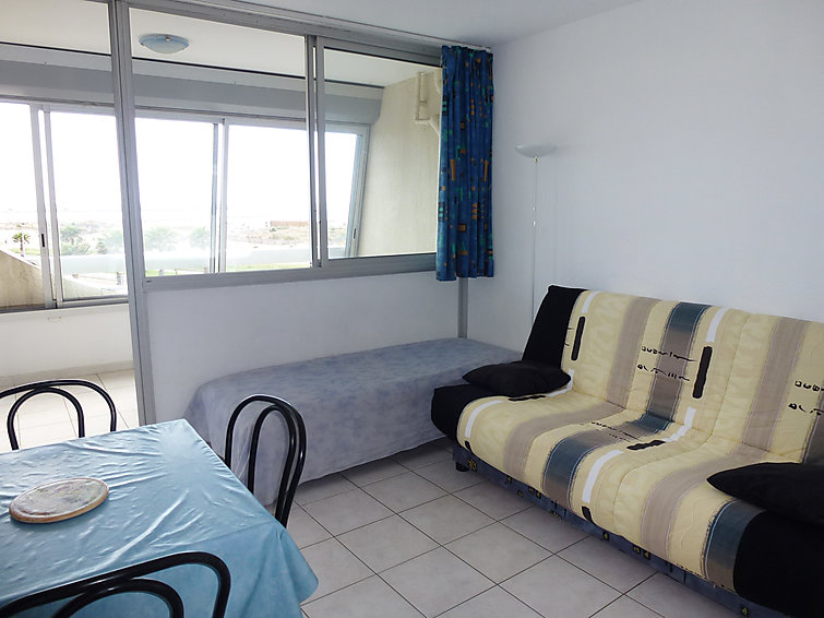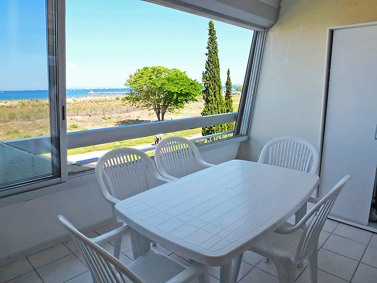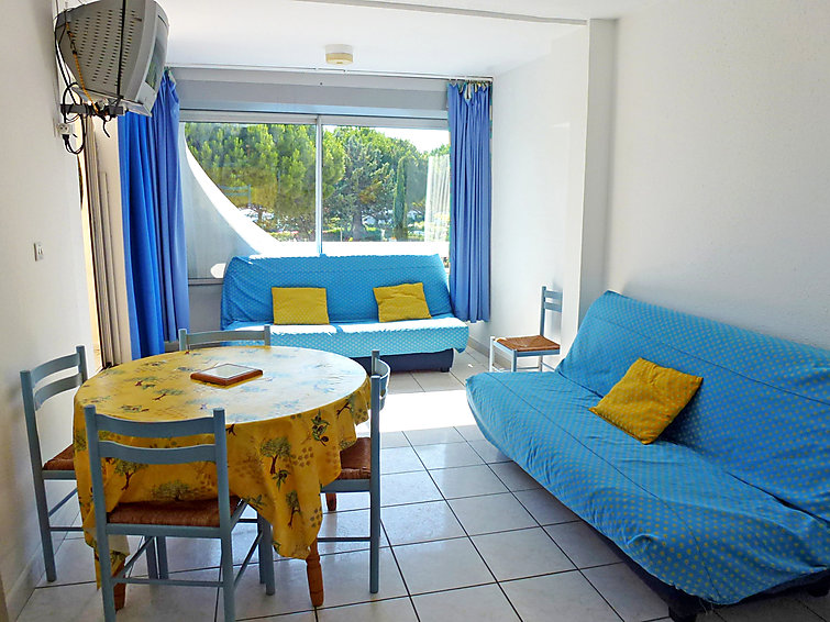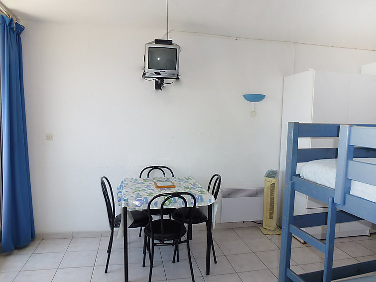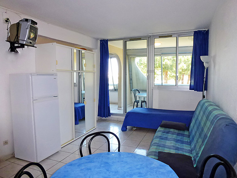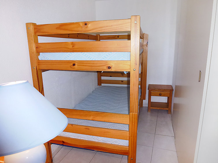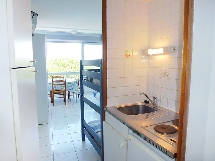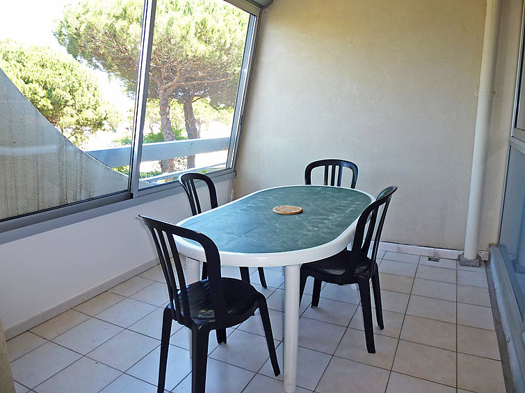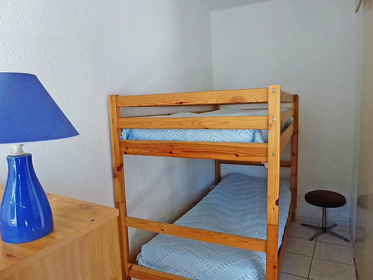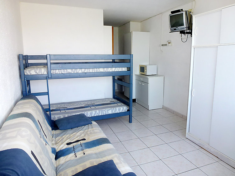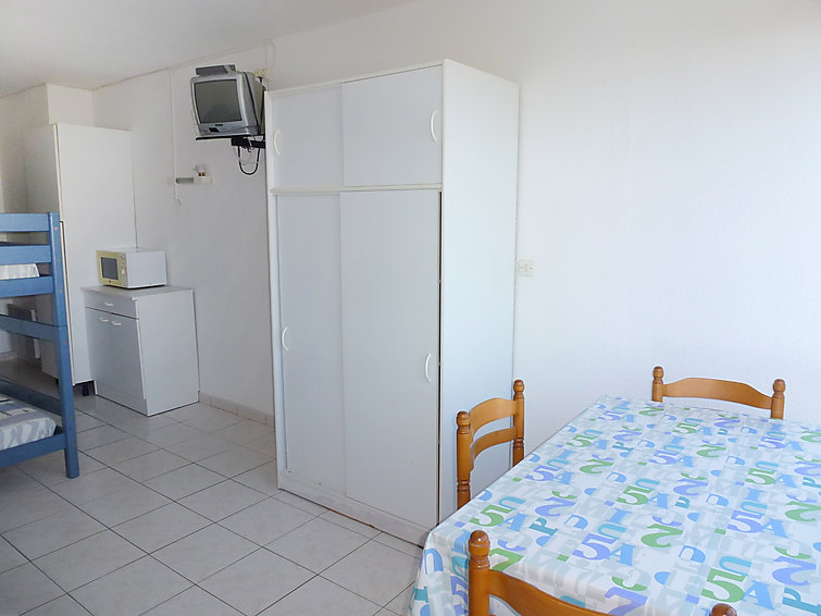Pour avoir plus de détails et réserver cet hébergement, choisissez une date ci-dessus et cliquez sur voir l'offre ! Vous serez redirigé vers le site proposant la location.Service confort : Ménage final inclus pour cette locationApt 2 pièces 32 m2 au 1er étage. Séjour/salle à manger avec 1 lit, 1 divan-lit double et TV. 1 petite chambre avec porte coulissante avec 1 x 2 lits superposés. Coin cuisine (2 plaques de cuisson, four micro-ondes, congélateur). Bain/WC. Chauffage électrique. Terrasse 10 m2, couverte, situation est. Meubles de terrasse. A disposition: lave-linge. Internet (Connexion WIFI, en sus). Place de parking. 1 animal/ chien autorisé.Résidence "Le Chabian". Dans le quartier de la Plage Sud, à 50 m de la mer, accès direct à la plage. En commun: piscine (100 m2, profondeur 150 - 180 cm, 01.06.-30.09.). Piscine de forme irrégulière. Bassin pour les enfants, tennis. Infrastructures de la résidence: ascenseur, réduit pour bicyclettes. Place de parking. Magasins 300 m, supermarché 2 km, centre commercial, restaurant 300 m, plage de sable 20 m. Port de plaisance 100 m. Centre de Thalassothérapie 20 m.