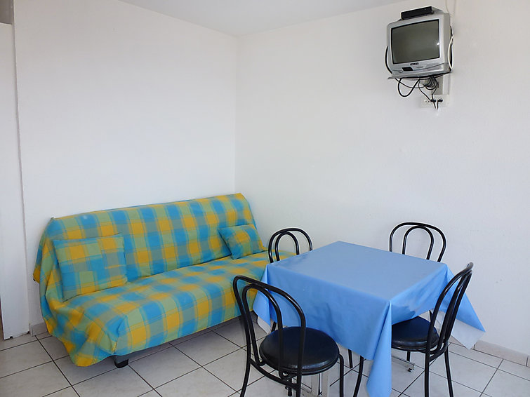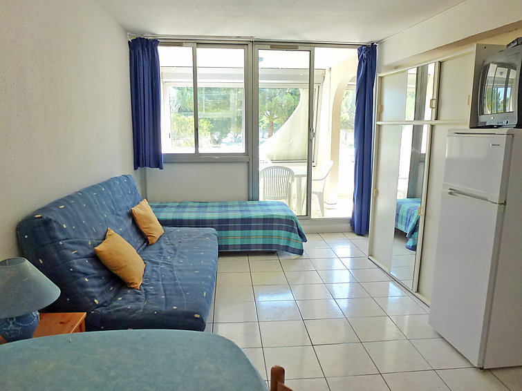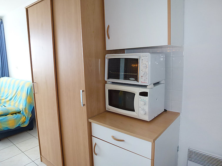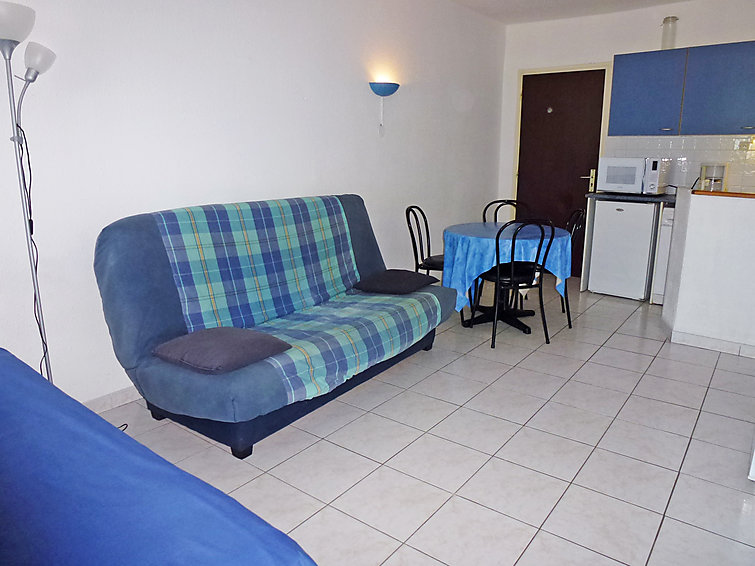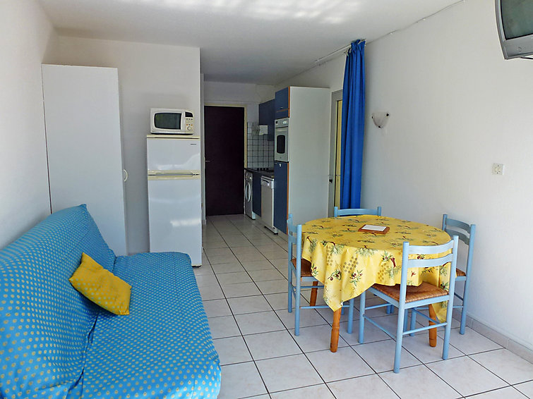 Pour avoir plus de détails et réserver cet hébergement, choisissez une date ci-dessus et cliquez sur voir l'offre ! Vous serez redirigé vers le site proposant la location.Service confort : Ménage final inclus pour cette locationApt 2 pièces 32 m2 au 1er étage. Séjour/salle à manger avec 1 lit, 1 divan-lit double et TV. 1 petite chambre avec porte coulissante avec 1 x 2 lits superposés. Coin cuisine (2 plaques de cuisson, four micro-ondes, congélateur). Douche/WC. Chauffage électrique. Terrasse 10 m2, couverte, situation est. Meubles de terrasse. A disposition: lave-linge. Internet (Connexion WIFI, en sus). Place de parking. 1 animal/ chien autorisé.Résidence "Le Chabian". Dans le quartier de la Plage Sud, à 50 m de la mer, accès direct à la plage. En commun: piscine (100 m2, profondeur 150 - 180 cm, 01.06.-30.09.). Piscine de forme irrégulière. Bassin pour les enfants, tennis. Infrastructures de la résidence: ascenseur, réduit pour bicyclettes. Place de parking. Magasins 300 m, supermarché 2 km, centre commercial, restaurant 300 m, plage de sable 20 m. Port de plaisance 100 m. Centre de Thalassothérapie 20 m.