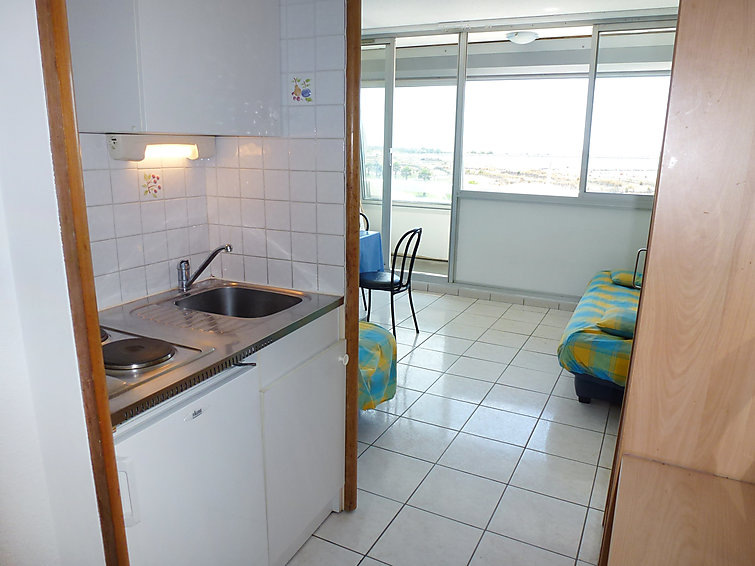 Pour avoir plus de détails et réserver cet hébergement, choisissez une date ci-dessus et cliquez sur voir l'offre ! Vous serez redirigé vers le site proposant la location.Studio 20 m2 au 3ème étage: séjour/salle à manger avec 1 divan-lit double et 1 x 2 lits superposés, TV. Coin cuisine (2 plaques de cuisson, mini-four, four micro-ondes). Bain/WC. Chauffage électrique. Balcon 4 m2, situation sud-ouest. Meubles de terrasse. Belle vue sur la mer. Place de parking.