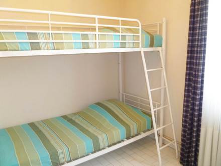 Apt 3 pièces 70 m2 sur 2 niveaux au 1er étage: séjour/salle à manger avec TV. 1 chambre avec 1 grand-lit. 1 chambre avec 1 x 2 lits superposés. Petite cuisine ouverte (4 plaques de cuisson, four, four micro-ondes). Salle de bains, WC séparé. Chauffage. Terrasse 10 m2, situation sud. Meubles de terrasse. Vue sur le port. A disposition: lave-linge. Place de parking (couvert). Veuillez noter: place d'amarrage privée. Maximum 1 animal/ chien autorisé. 3 m x 10 m. 2ème niveau : terrasse/solarium 32 m2.