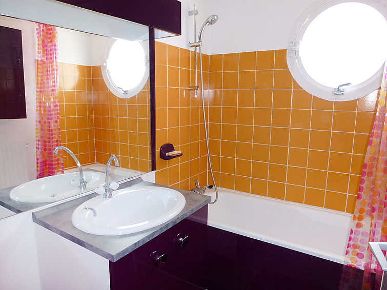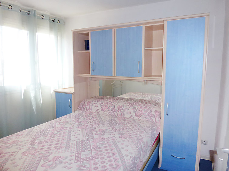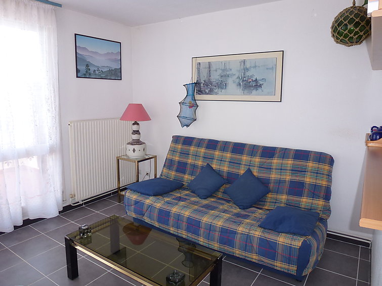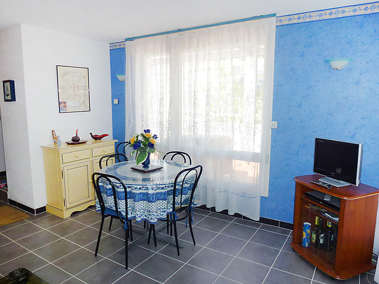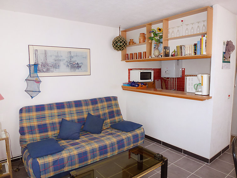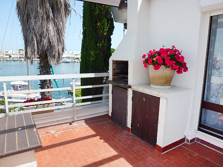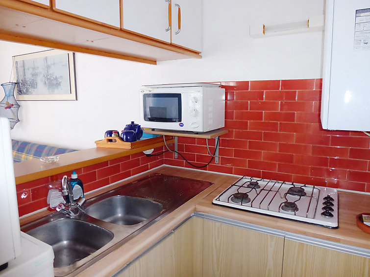 Apt 2 pièces 37 m2 au 1er étage: salle à manger avec 1 divan-lit double (140 cm), TV et DVD. 1 chambre avec 1 grand-lit. Coin cuisine (4 plaques de cuisson, four, four micro-ondes). Salle de bains, WC séparé. Terrasse 17 m2, situation nord, terrasse 10 m2, situation est. Meubles de terrasse, barbecue, chaises longues. Vue sur le port. Place de parking.