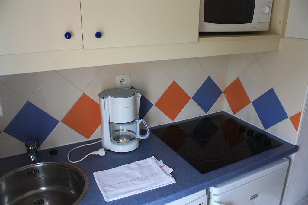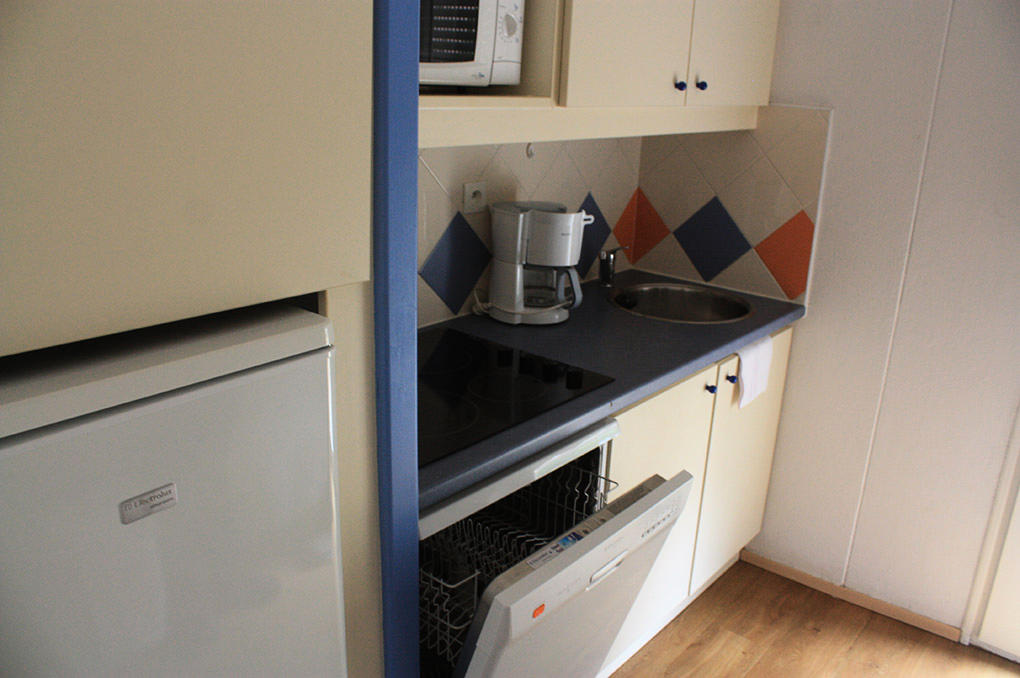 Dans le coin cuisine vous trouverez un lave-vaisselle, un four à micro-ondes et des plaques vitrocéramiques ainsi que l'ensemble des ustensiles de cuisine.