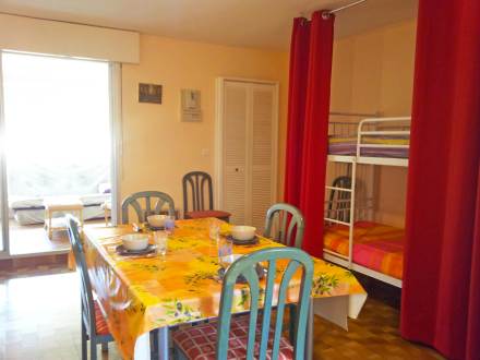 Pour avoir plus de détails et réserver cet hébergement, choisissez une date ci-dessus et cliquez sur voir l'offre ! Vous serez redirigé vers le site proposant la location.Studio cabine - 4 personnesVue sur mer - Avec terrasse- Un séjour avec un lit deux personnes- Une cabine avec des lits superposés- Equipement: TV, plaques électriques,mini-four, réfrigérateur-top- Surface de 20 m2 avec une terrasse de 10 m2- Exposition Sud- Plage à 30 m et centre à 450 m- Parking privé fermé avec barrière- Deuxième étage