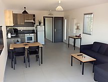 Apt "Cala Rossa", 2 pièces pour 4 personnes, 47 m2 au 1er étage, moderne et plaisant aménagement. Séjour/salle à manger avec TV (satellite). Non permis de fumer. Internet (Connexion WIFI). 1 divan-lit double. Chambre à coucher avec 2 lits normaux. Cuisine ouverte avec four à 4 plaques, four micro-ondes, four, lave-vaisselle et congélateur. Douche et WC séparés. Terrasse 13 m2, meubles de terrasse 2 chaises longues. Autres fournitures: lave-linge.