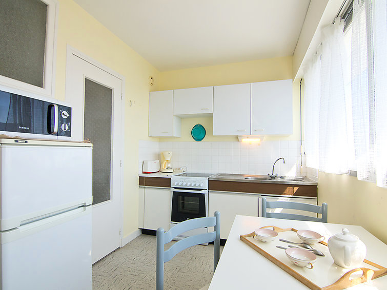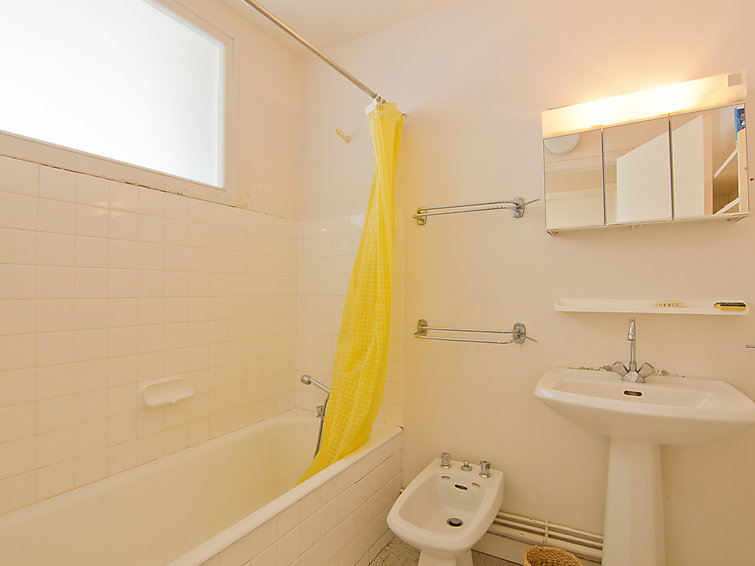 Apt 2 pièces 40 m2 au 3ème étage. Séjour/salle à manger avec 1 lit (90 cm), TV. 1 chambre avec 1 grand-lit (1 x 140 cm). Cuisine (3 plaques de cuisson, four, four micro-ondes). Salle de bains, WC séparé. Chauffage électrique. Loggia. A disposition: lave-linge. Place de parking.