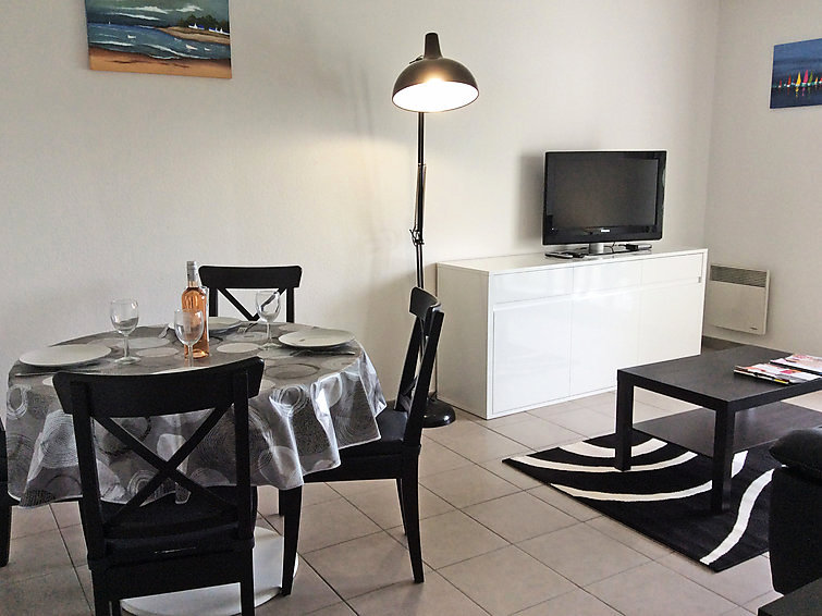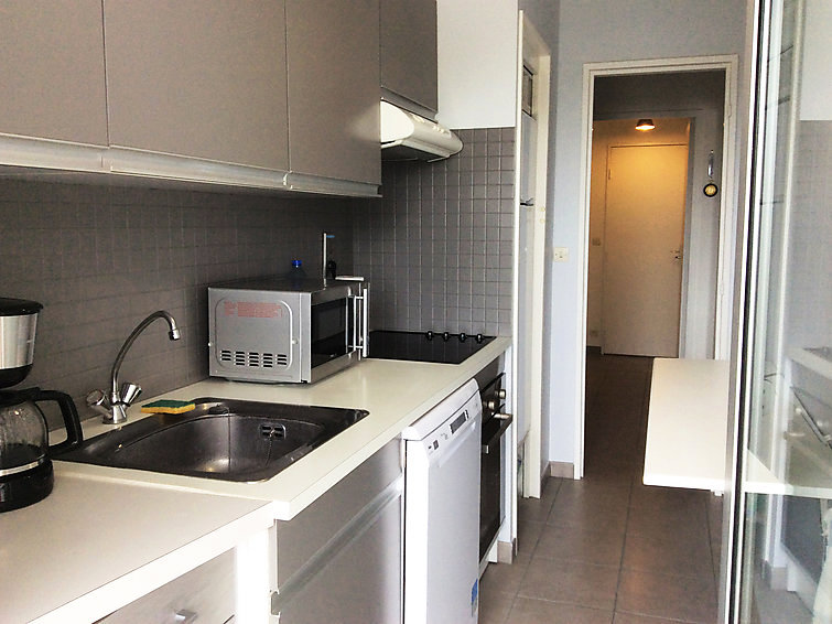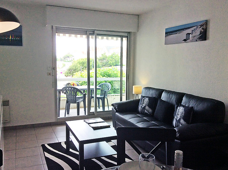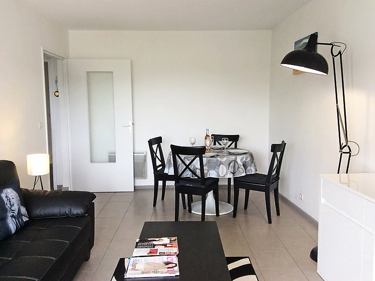 Apt 4 pièces 58 m2 au 2ème étage. Clair, complètement rénové en 2016, aménagement agréable: séjour/salle à manger avec TV. Sortie sur la terrasse. 1 chambre avec 1 grand-lit (140 cm). 1 petite chambre d'enfants avec 1 lit (80 cm). 1 chambre avec 2 lits (90 cm). Cuisine (4 plaques de cuisson, four, lave-vaisselle, four micro-ondes, congélateur). Sortie sur la terrasse. Salle de bains, WC séparé. Chauffage électrique. Petite terrasse 7 m2, situation sud et situation ouest. Meubles de terrasse. Vue partielle sur la mer. A disposition: lave-linge. Garage No 30. Veuillez noter: logement côté rue.